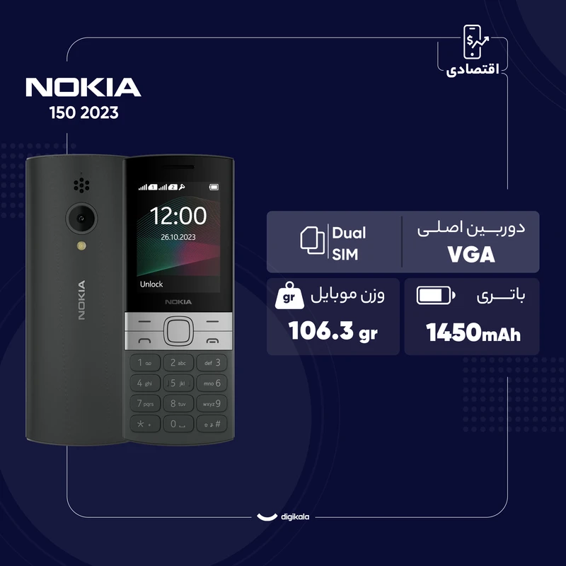 گوشیهای کلاسیک هنوز هم طرفداران خود را در بین کاربران دارند و یکی از بهترین گزینههای ممکن برای استفاده روزمره معمولی هستند و در این میان نوکیا 150 2023 میتواند یکی از بهترین انتخابهای ممکن برای شما باشد. نوکیا همواره توانسته است در زمینه گوشیهای کلاسیک عملکرد بسیار خوبی داشته باشد و این گوشی هم از این اتفاق مستثنی نیست. این گوشی به صفحهنمایش رنگی با ابعاد 2.4 اینچ و رزولوشن 240×320 پیکسل با نمایش 167 پیکسل در هر اینچ از نوع TFT مجهز شده که در نمایش اعلانها و خوانایی نوشتهها، عملکرد بسیار خوب و کاملا قابل قبولی دارد. در قسمت پایینی صفحهنمایش هم صفحهکلید را شاهد هستیم ابعاد مناسب و متریال باکیفیت، امکان استفاده راحت و سریع را برای شما فراهم کرده است. در قسمت پشتی این گوشی هم یک سنسور دوربین با رزولوشن VGA در نظر گرفته شده. سنسور دوربینی که در نور روز امکان ثبت تصاویر معمولی را فراهم کرده است. خبری از دوربین سلفی برای این گوشی نیست. حضور باتری با میزان ظرفیت 1450 میلیآمپرساعت هم سبب شده تا نوکیا 150 2023 همانند اکثر گوشیهای کلاسیک، به ازای هر بار شارژ، زمان آماده بهکار بسیار خوبی را ارائه کند و دیگر نیازی نیست هر روز گوشی خود را شارژ کنید. در مجموع باید بگوییم که اگر به دنبال خرید گوشی کلاسیکی هستید که در فعالیتهای روزمره معمولی عملکرد خوبی داشته باشد و از طرفی باید بدانید که برند نوکیا به مراتب کیفیت ساخت بالاتری به نسبت برندهای دیگر فعال در حوزه گوشیهای کلاسیک دارد، این گوشی میتواند گزینه بسیار مناسبی برای شما باشد.