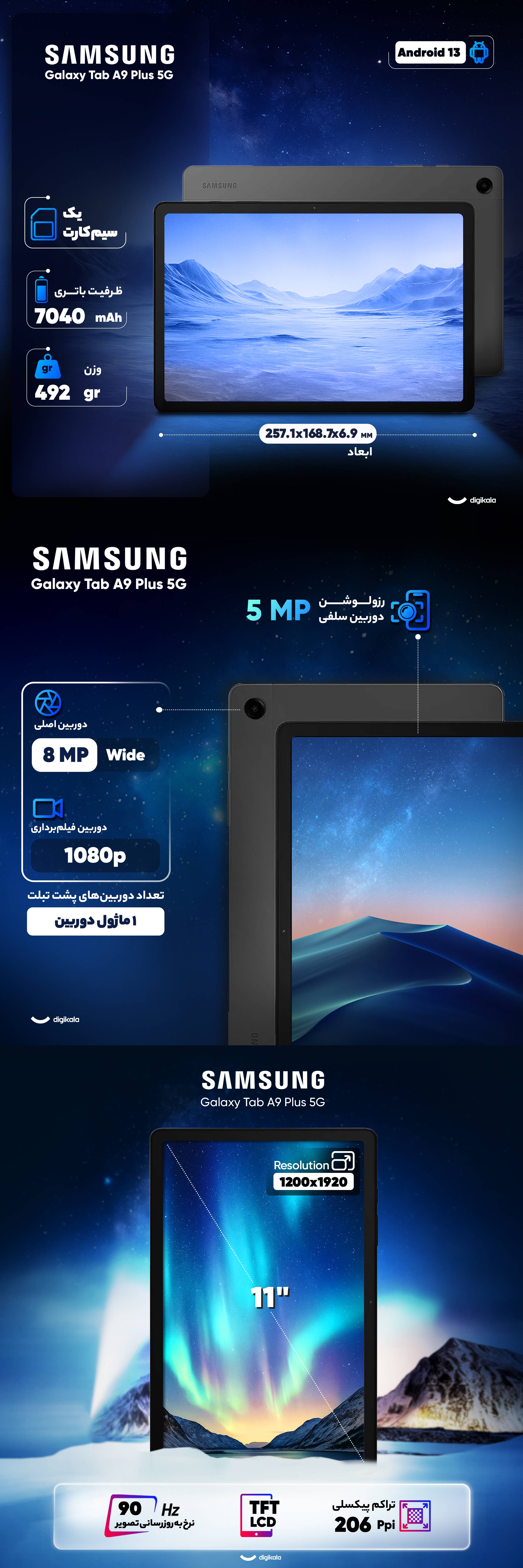 تبلت 11 اینچ سامسونگ مدل Galaxy Tab A9 Plus 5G ظرفیت 128 گیگابایت و رم 8 گیگابایت
