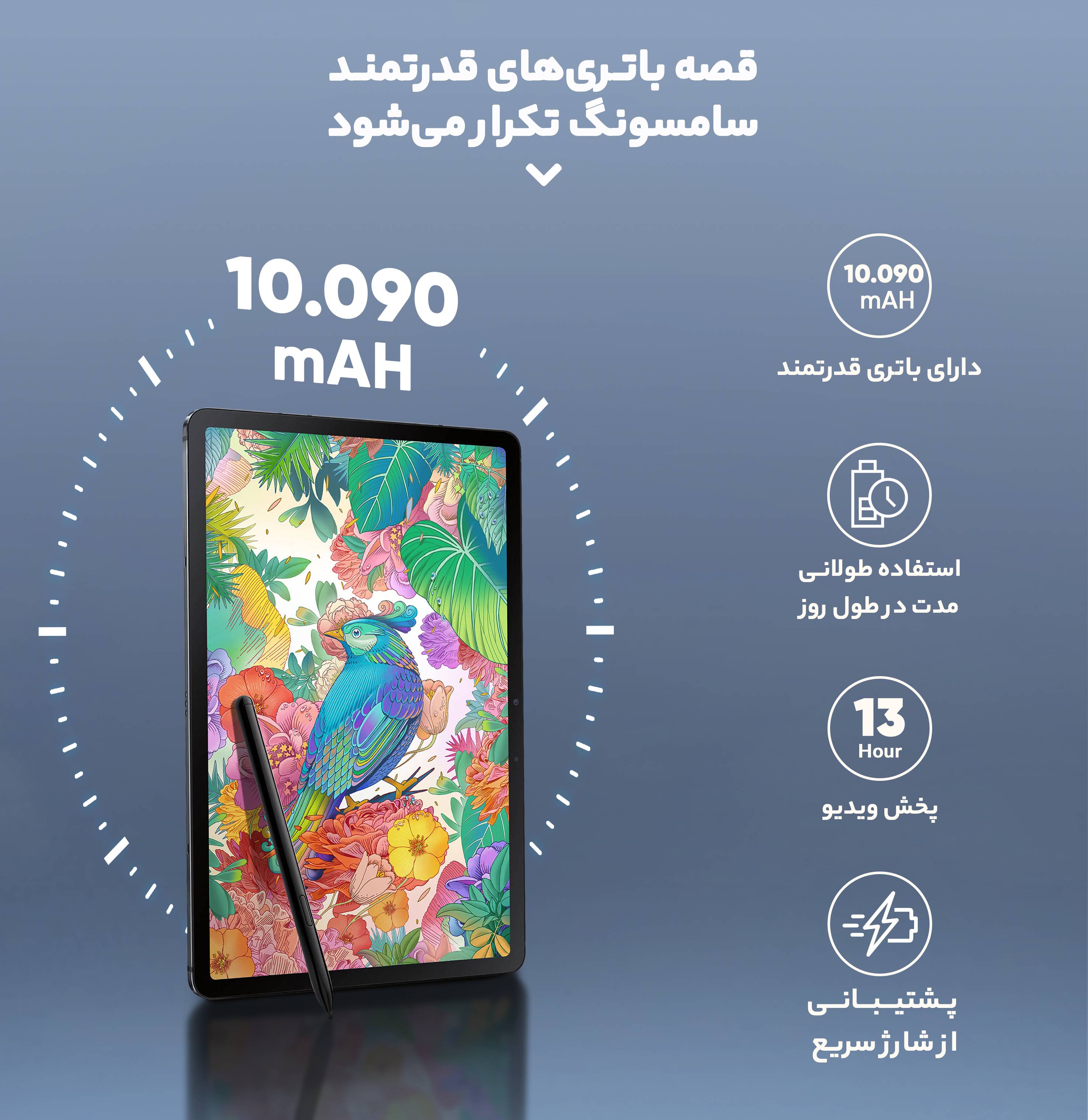 | کارکرد باتری | باتری غیر قابل جدا شدن پشتیبانی از شارژ سریع |