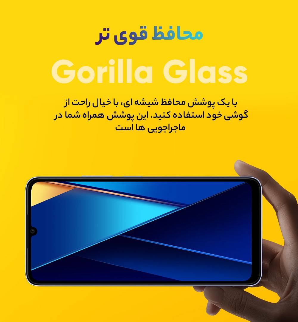 یکی از نقاط قوت Poco C65، نمایشگر 6.74 اینچی آن است که از پنل IPS LCD بهره میبرد. این صفحه نمایش با رزولوشن 720 در 1600 پیکسل و تراکم پیکسلی 260 پیکسل در هر اینچ، کیفیت تصویری مطلوبی ارائه میدهد. نرخ تازهسازی 90 هرتزی نیز باعث میشود که تجربه استفاده از گوشی، خصوصاً هنگام بازیها و تماشای فیلمها، روانتر و جذابتر باشد. پوشش Gorilla Glass از نمایشگر در برابر خط و خش محافظت کرده و روشنایی صفحه تا 600 نیت در حالت HBM، به کاربر امکان مشاهده محتوا حتی در زیر نور مستقیم آفتاب را میدهد.